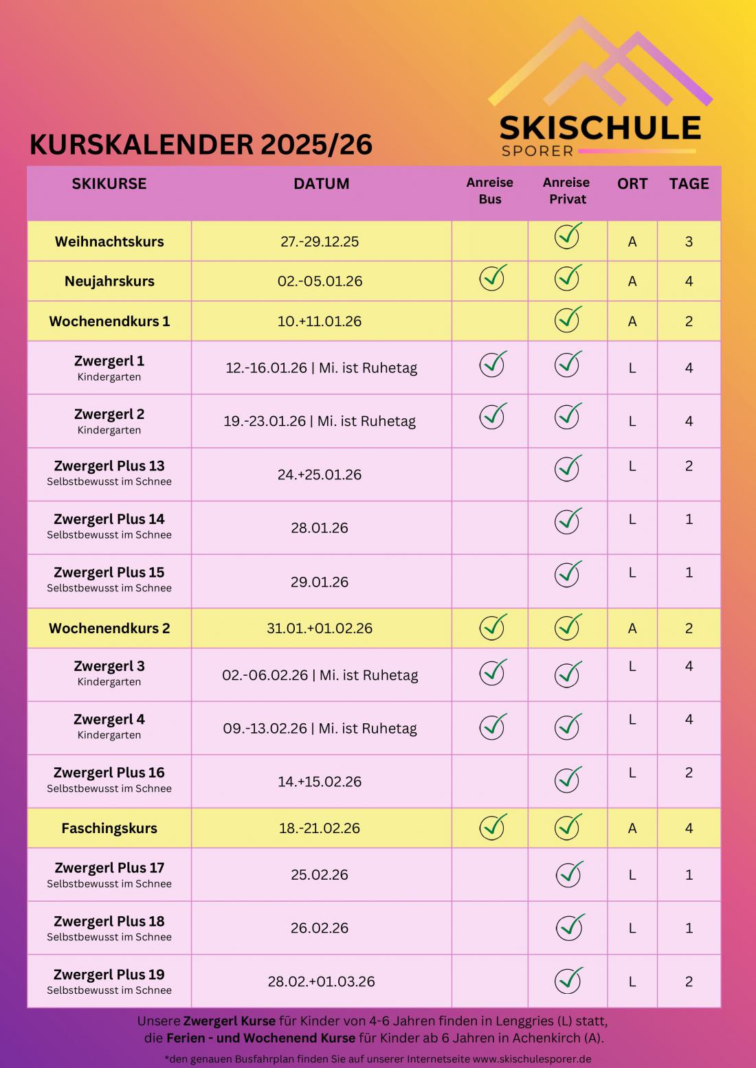 SKIKURS ab 6 Jahren