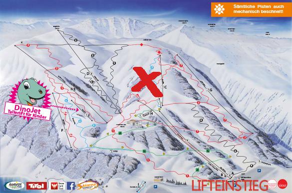 Sie können über die Rodelbahn (grün eingezeichnet) bis zur Mittelstation laufen